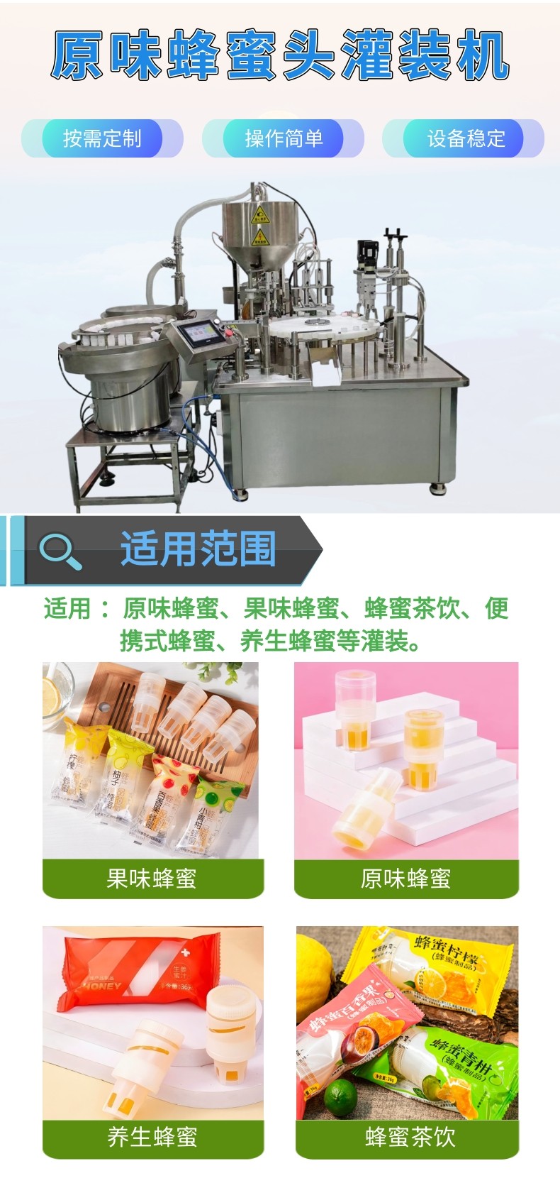 原味蜂蜜头灌装机的核心功能包括: